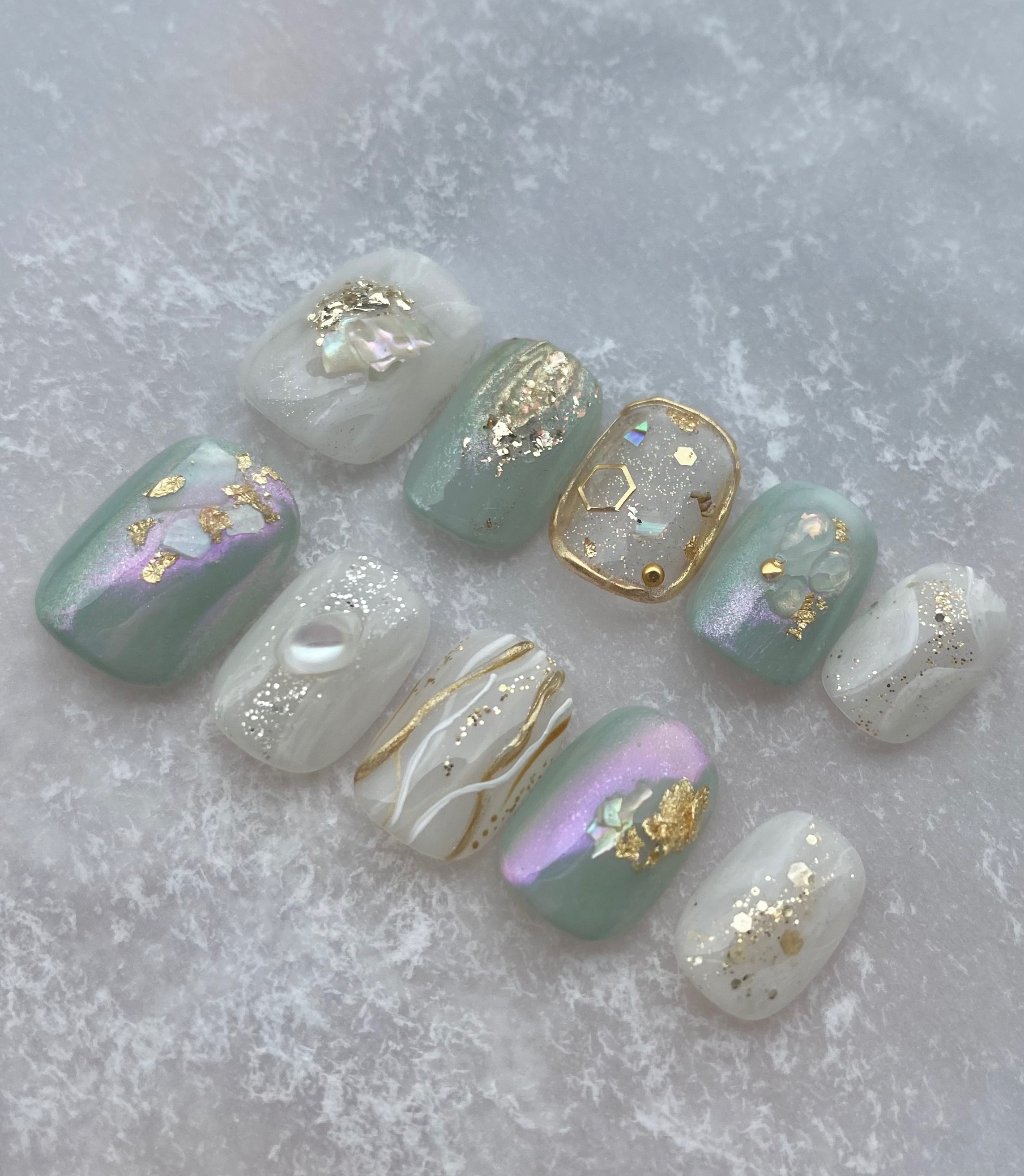 - ネイルケア > ジェルネイル・ネイルシール > ネイルシール 20Pcs 爪やすり付き ラメ ホワイト くすみグリーン くすみグリーン 爪やすり付き ホワイト ラメ 20Pcs ネイルシール