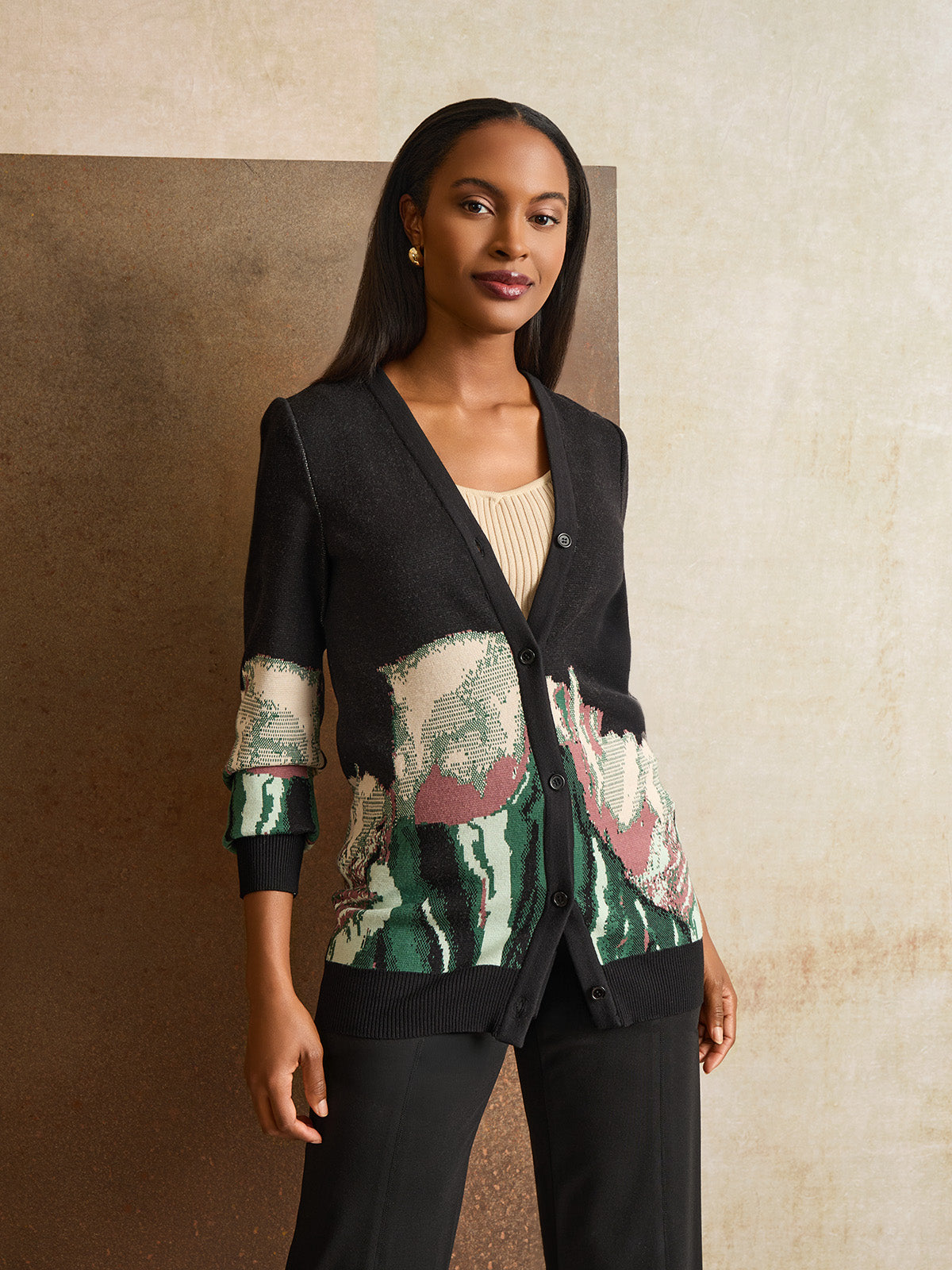 アート・デザイン・音楽 Des photographes et le cardigan pression Relaxed Floral Jacquard Knit Cardigan