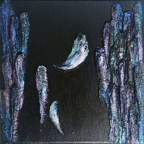 烏の濡れ羽 舞い落ちる テクスチャーアート 18×18㎝ S0 原画1点のみ 烏の濡れ羽 舞い落ちる / テクスチャーアート 18×18㎝ おしゃれ