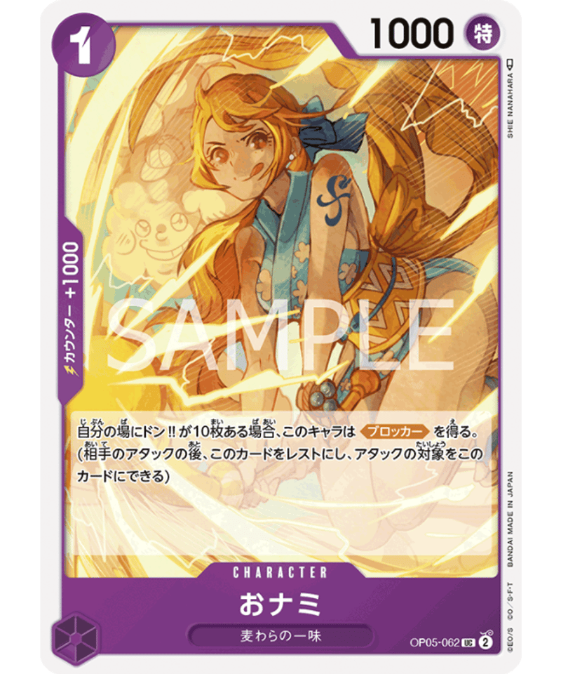| 商品の特徴 | おナミ | One piece card game。OP】おナミ【R】OP06-101ONE PIECE CARD GAME ワンピースカードゲーム。OP】ナミ【R/SP】(OP05収録)OP01-016ONE PIECE CARD GAME ワンピース。One Piece CCG Promo Card One Piece Card Game Promo - O-Nami OP06。おナミ:ONE PIECE CARD GAME 2nd ANNIVERSARY COMPLETE GUIDE限定特典 R OP06-101シリーズ: ONEPIECE CARD GAMEセット: 限定商品カード名: おナミ型番: OP06-101レアリティ: R種別...シングルカードブースターパック...プロモ/限定商品セット...限定商品カード名...おナミレアリティ...R | ||