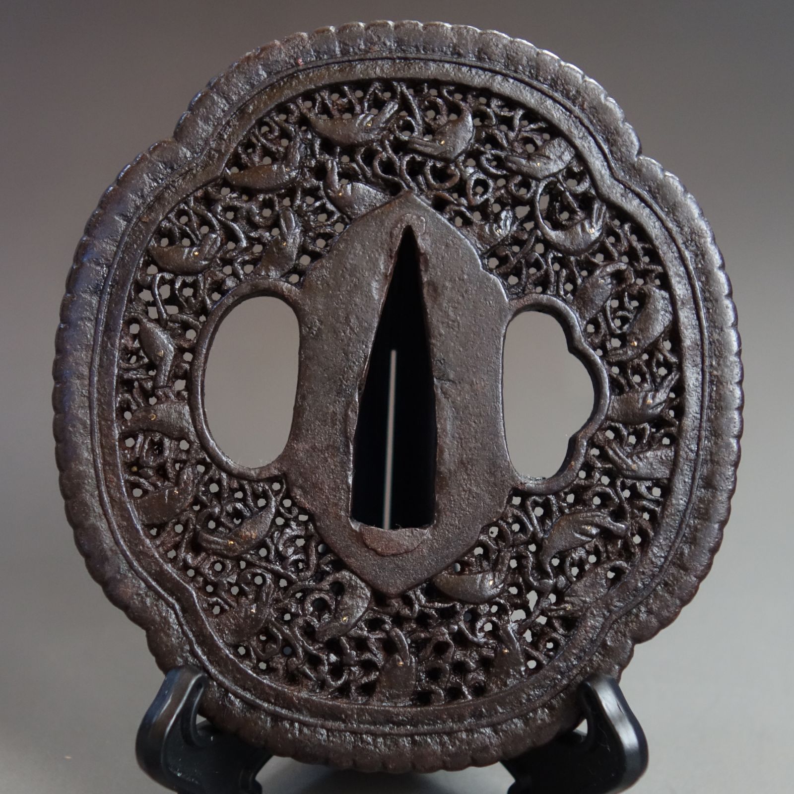- 美術品・アンティーク・コレクション > 武具 > 鍔 無銘 草花図 鉄鐔 拵 日本刀 刀装具 骨董 古美術 江戸時代 鍔 無銘 草花図 鉄鐔 拵 日本刀 刀装具 骨董 古美術 江戸時代