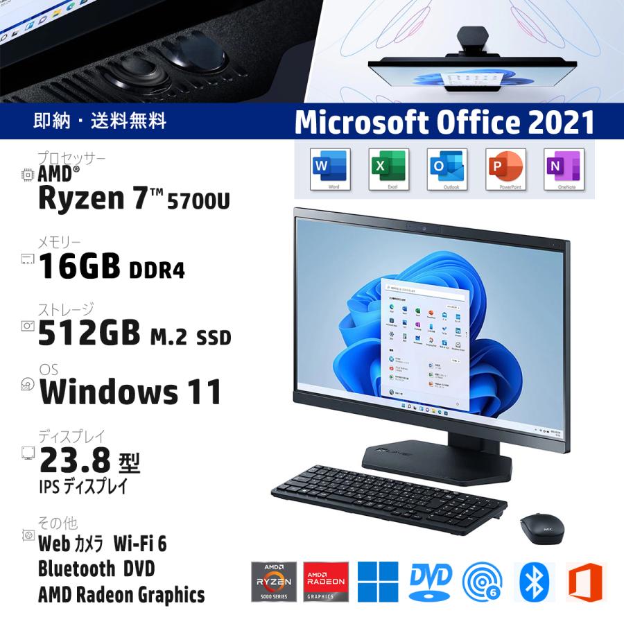 NEC 23.8型 デスクトップパソコン LAVIE PC-A2366DKB LaVie NEC 23.8型 LAVIE A23 PC-A2366DKB AMD Ryzen 7 5700U メモリ